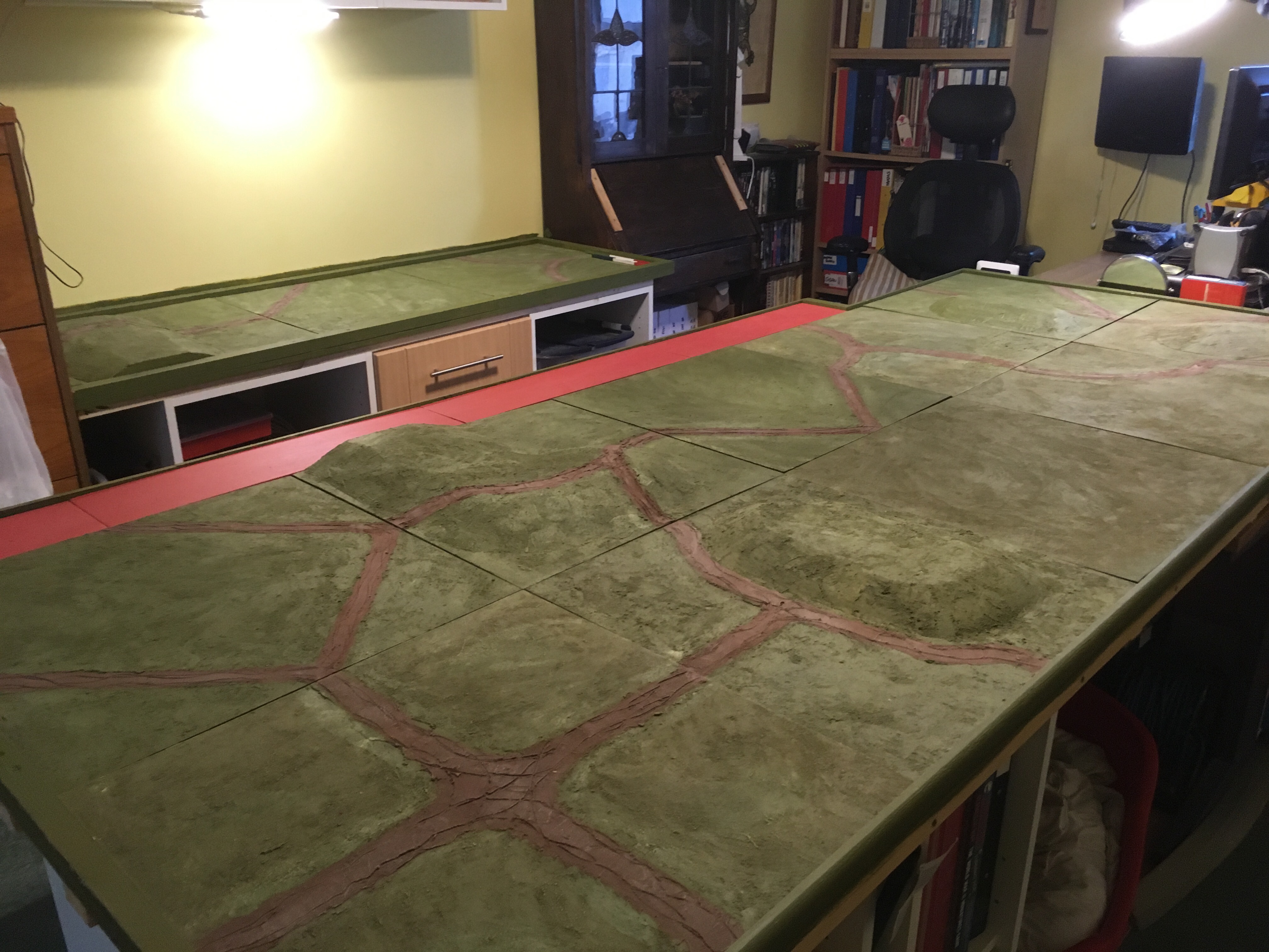 Terrain boards deployed for first game in a couple of weeks. Next stage – villages & woods. Kick off bash 2nd Feb.