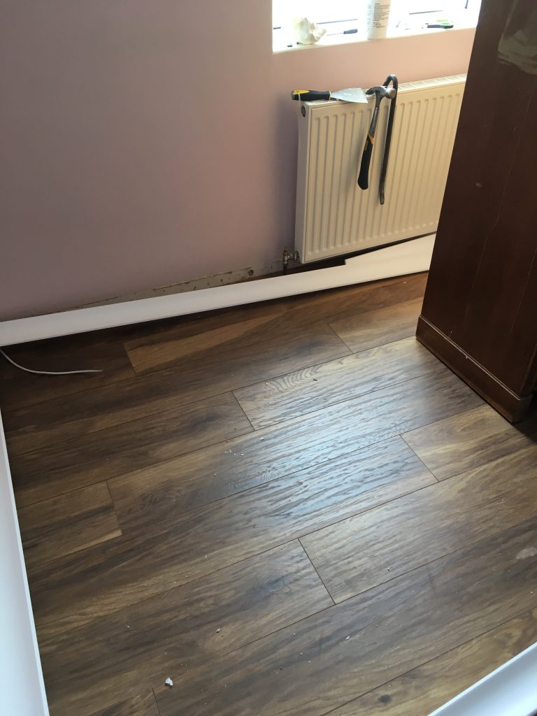 Meanwhile – upstairs Tamsin and Jackie have already sorted the walls. Andy sorts the floor. Just need the coving and Skirting board in