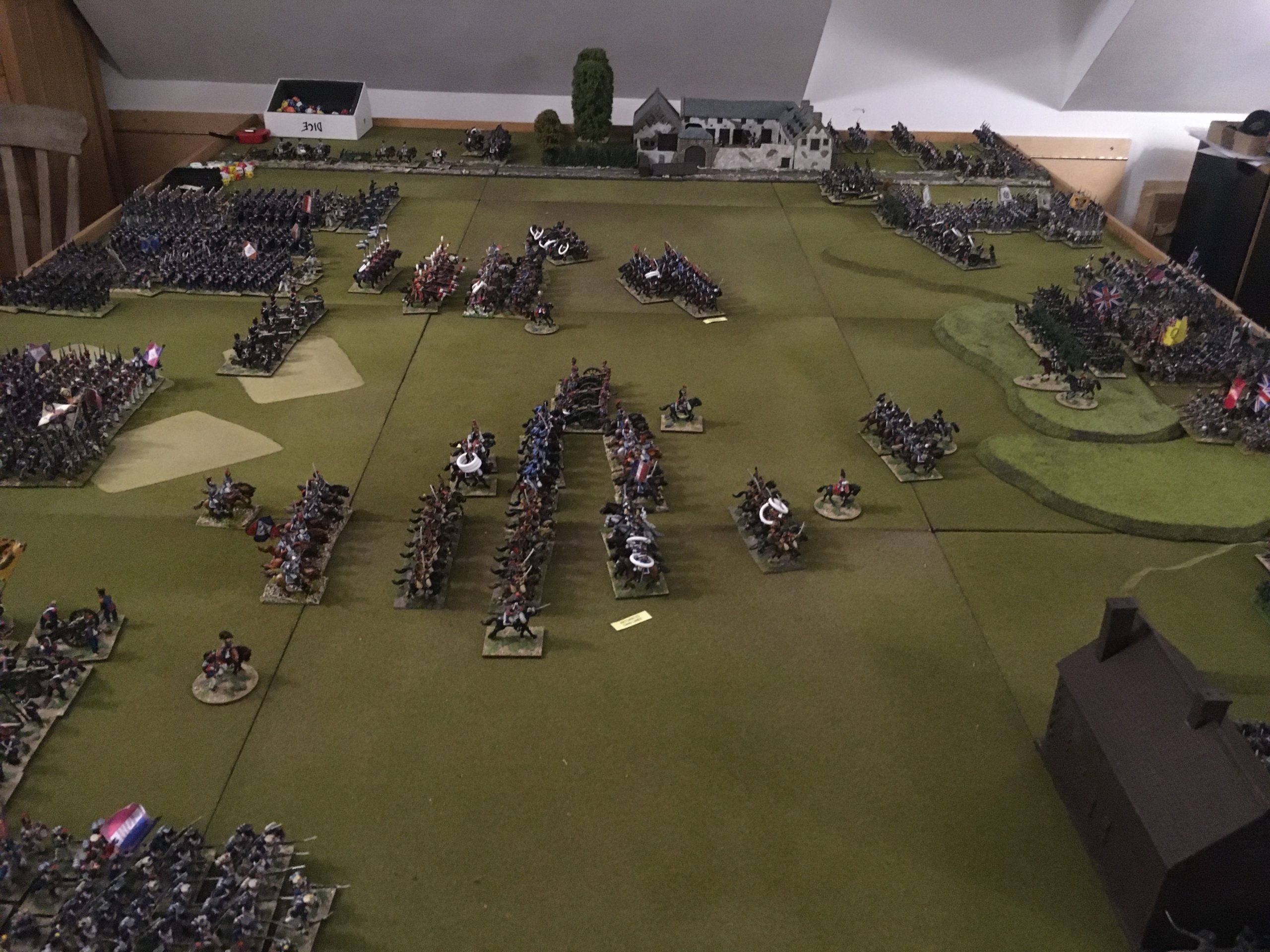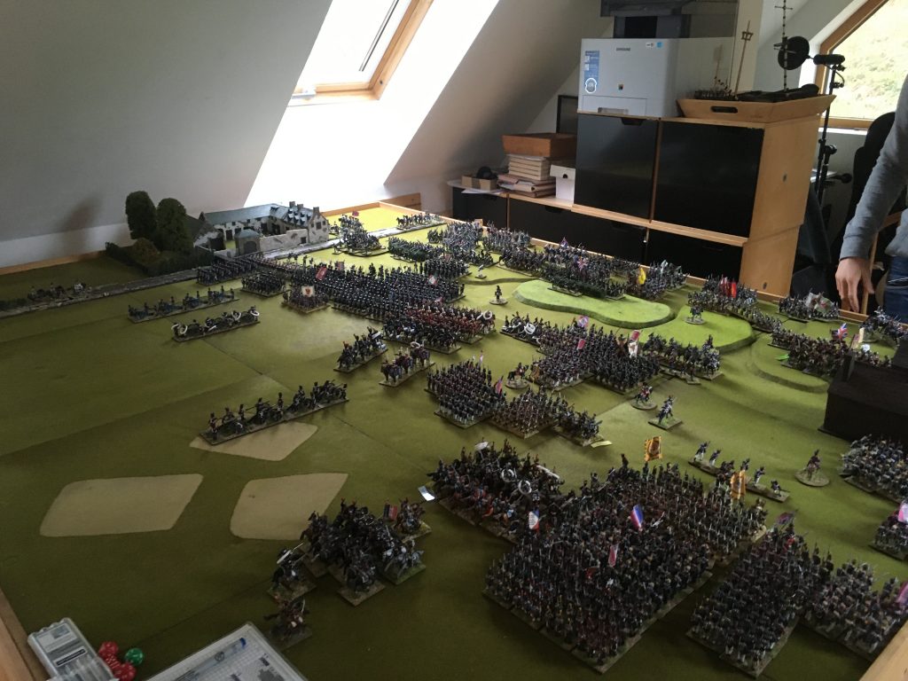 The infantry from the old guard have just turned up. As the game progressed they started their advance up towards the british lines, as the 1st and 2nd Divisions fell on Papelotte.