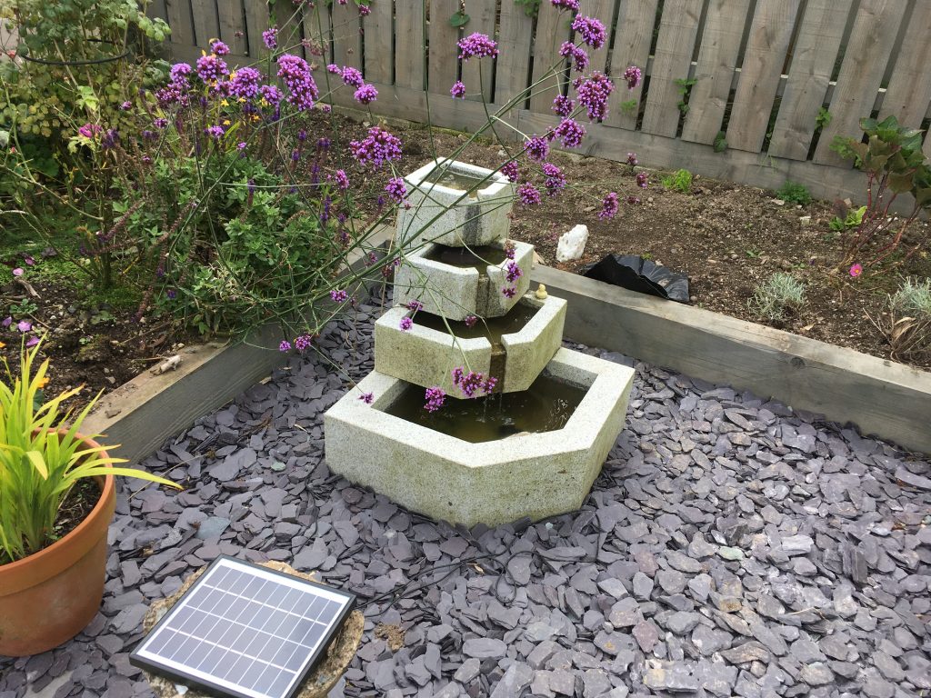 Thanks to a bung with a hole, the water feature pipe is now hidden a bit more. Think it leaks a bit but looks better!