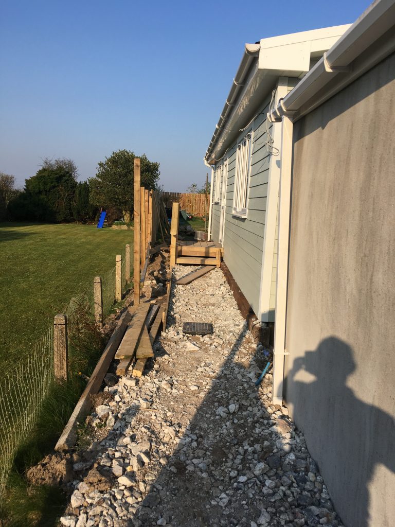 The fence company have been back to at least start on making everything upright. Water and electric have been plumbed in , though the electric is waiting on a meter, and final cabling inside.