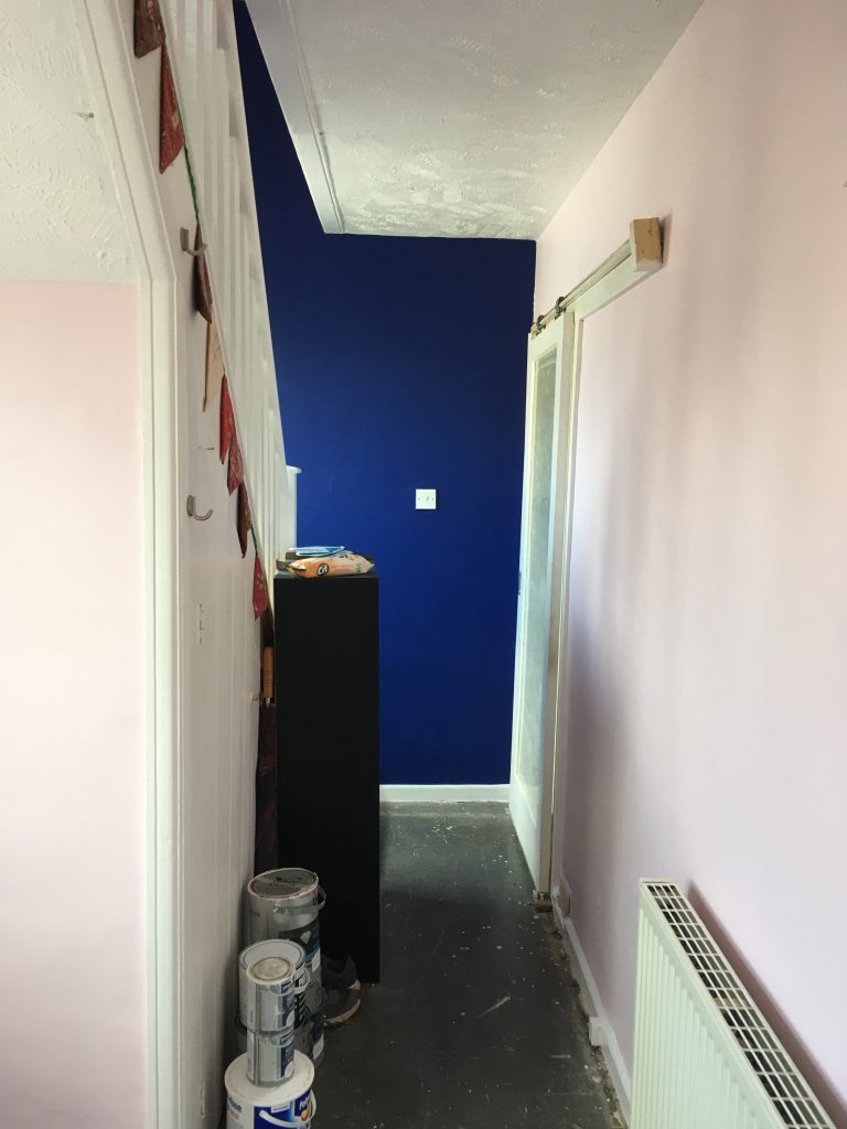Next stage – remember where we had the stuff on the walls and get the new doors installed for downstairs, and remove the remaining green – ie the carpet.