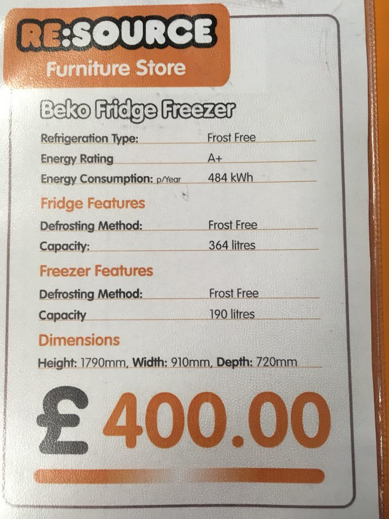 In all the excitement we even went and bought a fridge while the doorway was on the large size. Its a bit like this one at ao.com