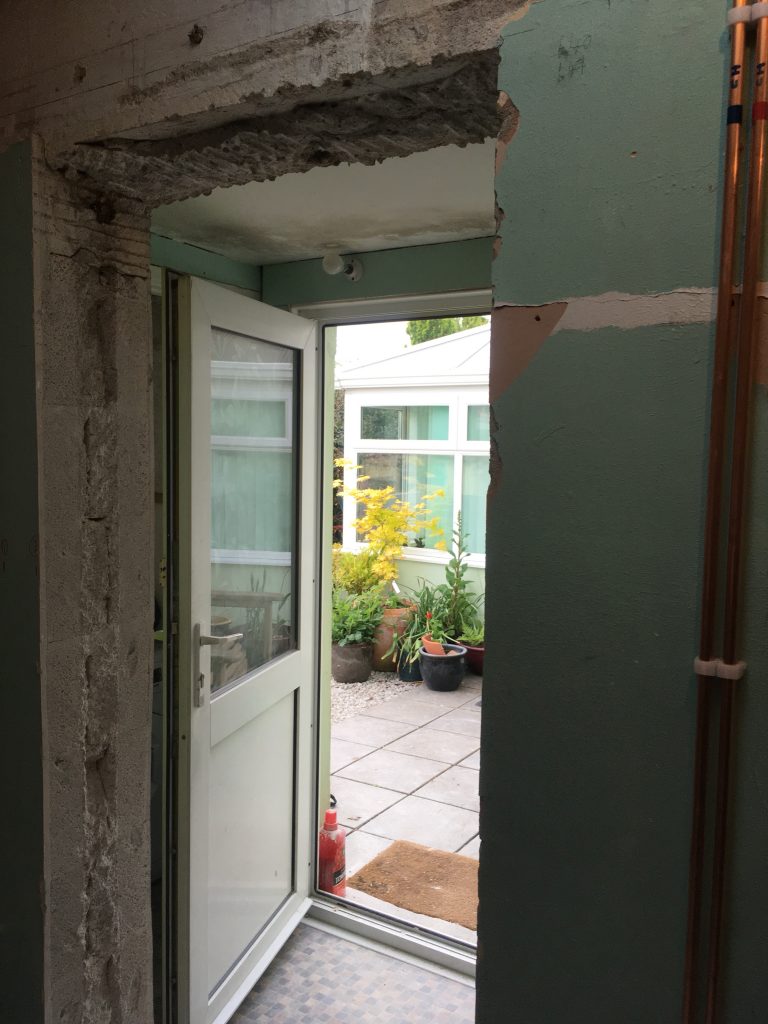 The builders have been back, battoned up the walls, and made anew doorway. Now we just need the actual door!