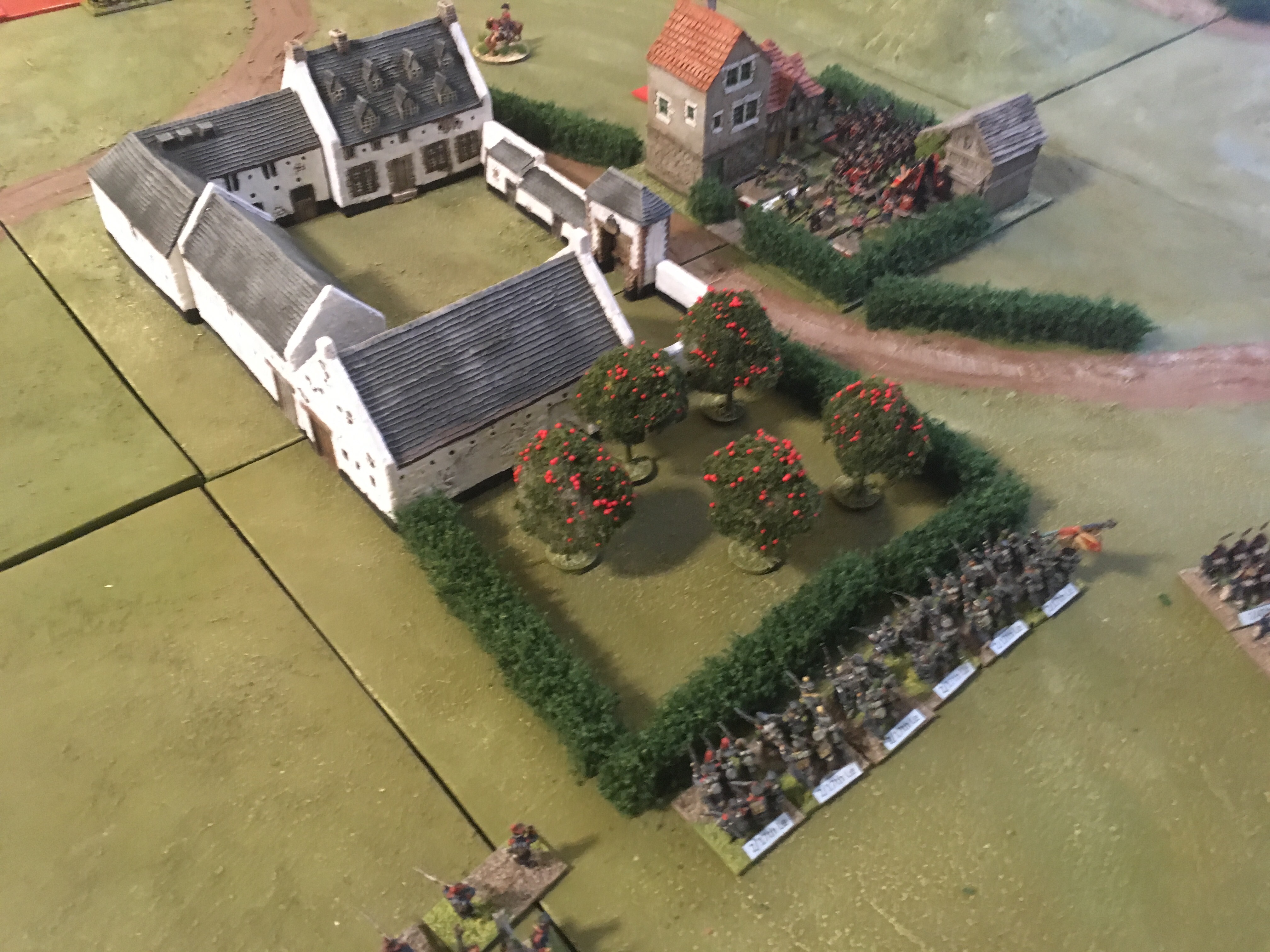 Just after we started La Haye Sainte painted by and from Hovels turned up. Couldn’t pass up a photo opportunity.
