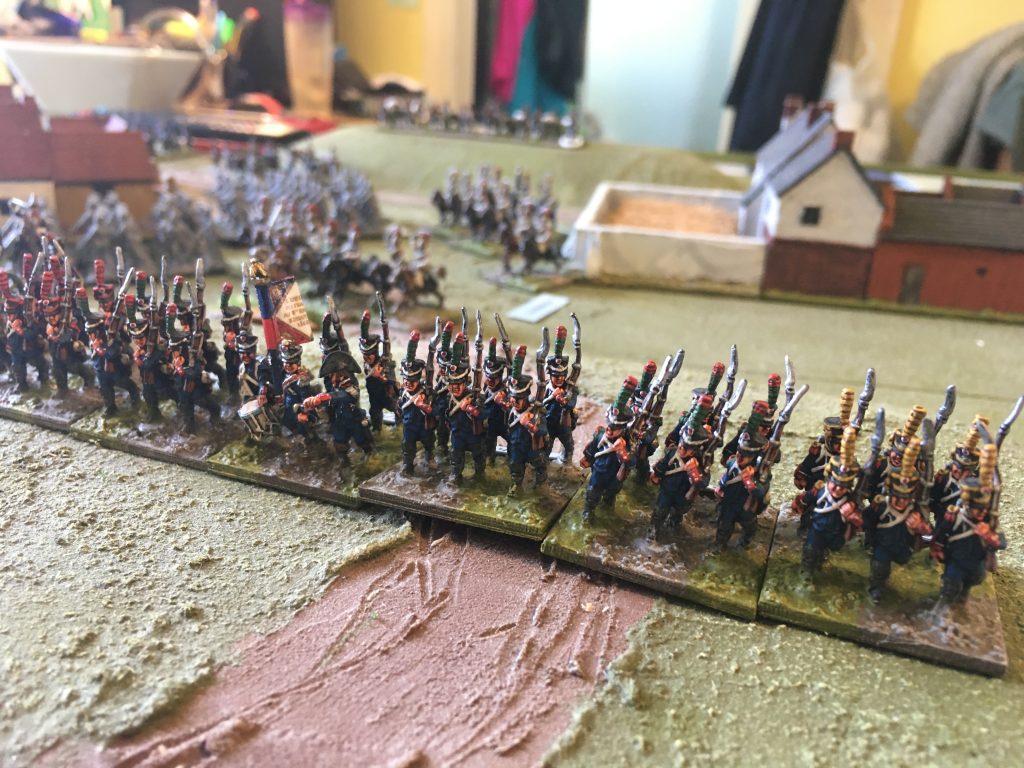 Finally finished basing and flagging up, The 6th Light push over the ridge behind Papolette.