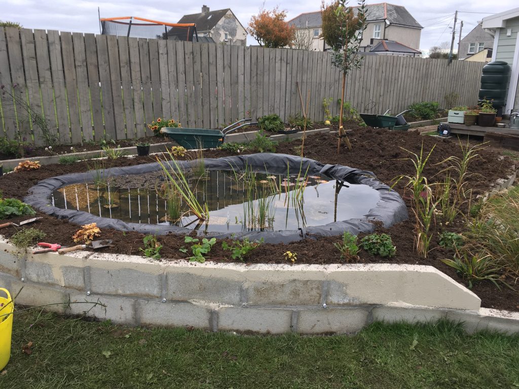 With the wall, a bit of paint, loads of earth, and plant transplanting, the pond garden takes shape, and the huge mound gets reduced a little.
