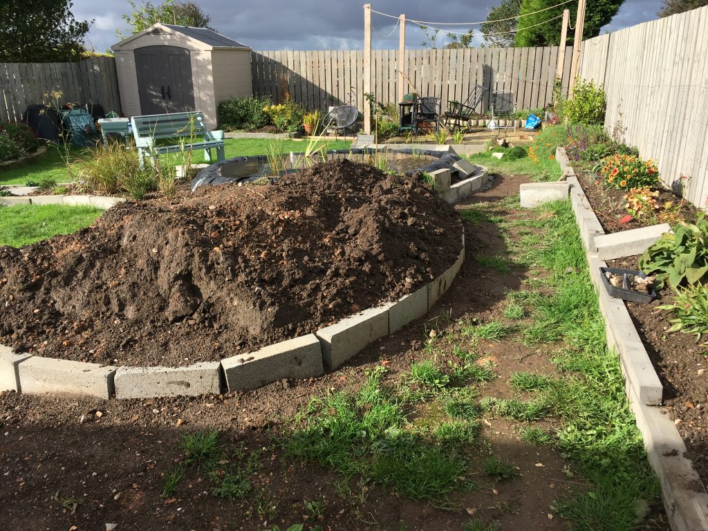Phil has been round doing stuff! Stage 1 – the base level is down. Next stage is to add the second (and final) layer of blocks. Hopefully we have enough.