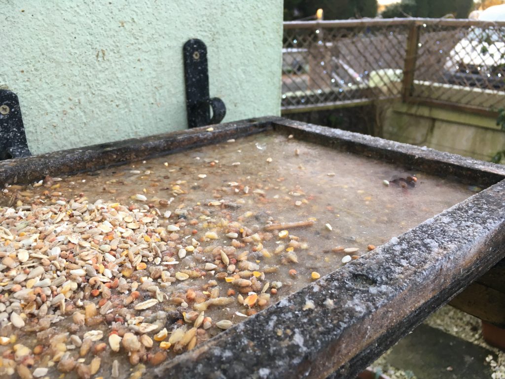 Even the bird table freezes over. Wonder if Robins like skating?